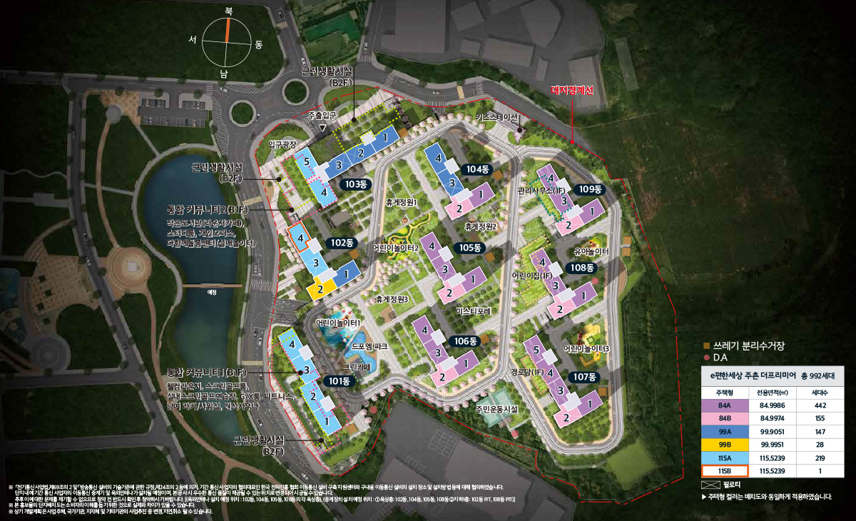 공급규모 : 아파트 지하 2층~지상 29층 9개 동, 총 992세대(전용면적 84㎡A 442세대 / 84㎡B 155세대 / 99㎡A 147세대 / 99㎡B 28세대 / 115㎡A 219세대 / 115㎡B 1세대)