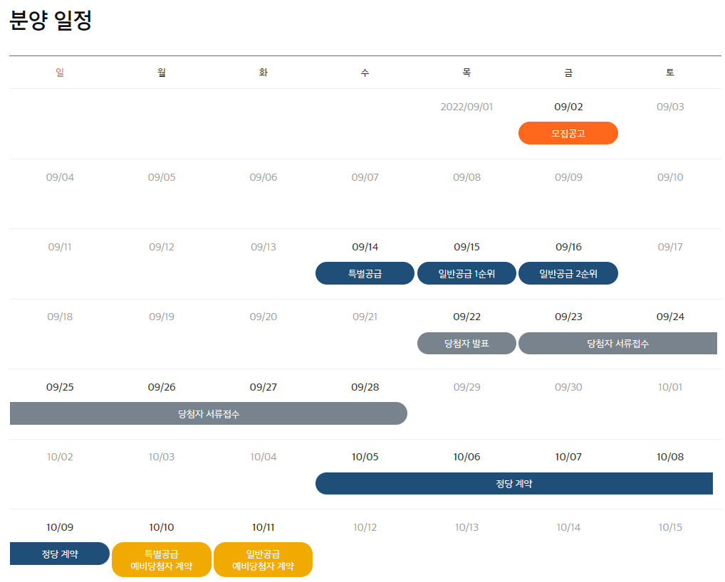 특별공급 예비당첨자 계약: 10/10 ~ 10/11