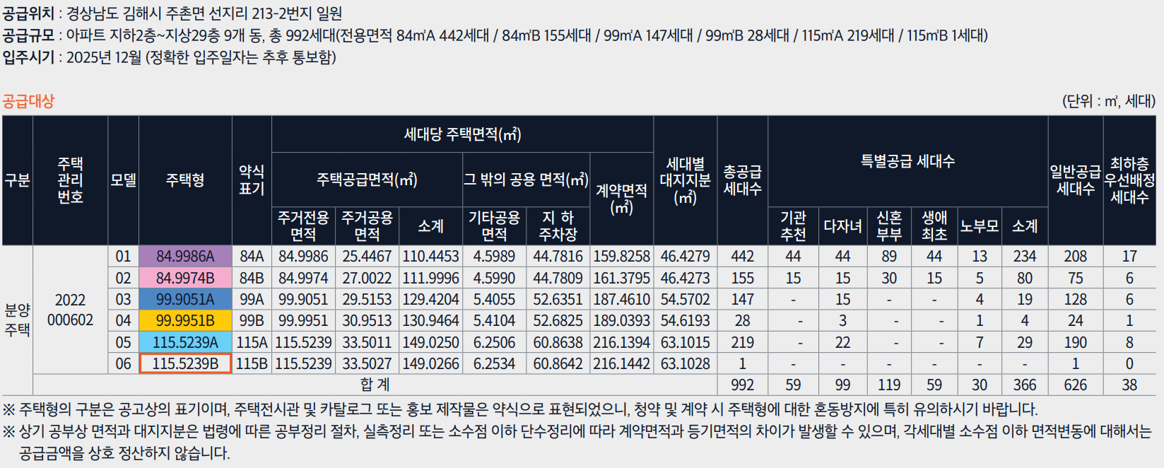 공급 위치 : 경상남도 김해시 주촌면 선지리 213-2번지 일원