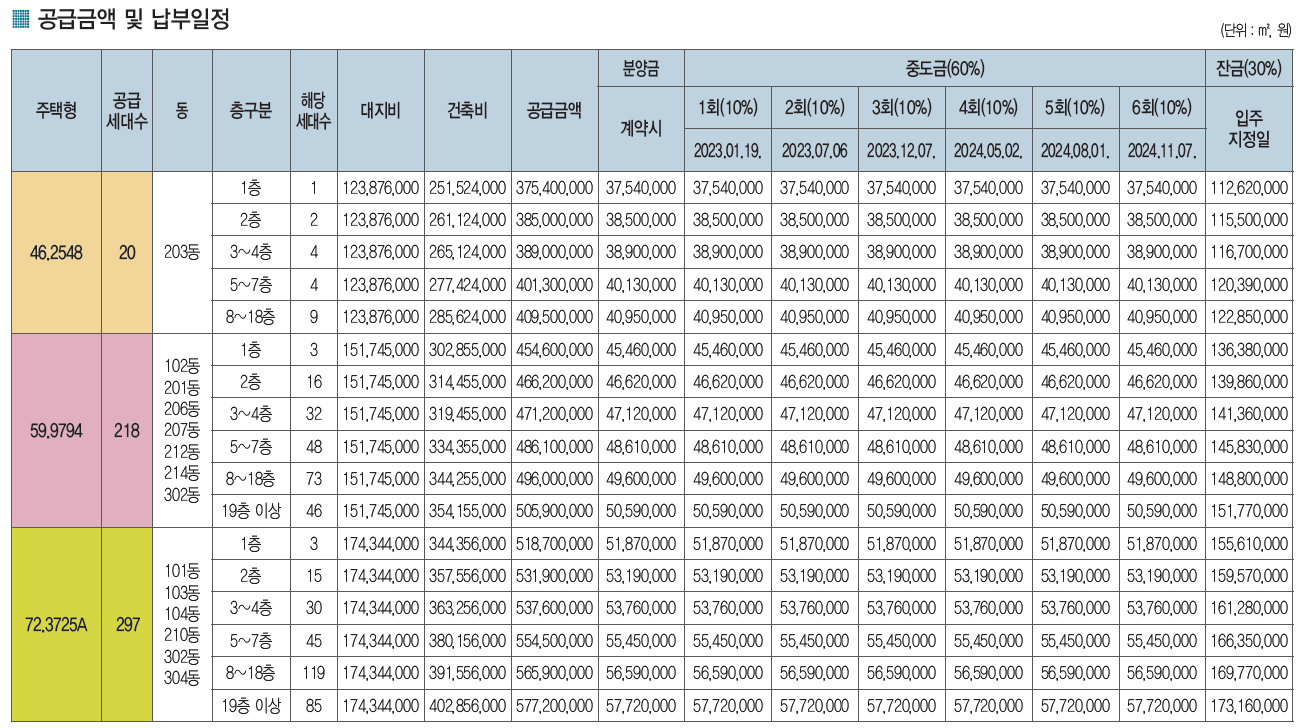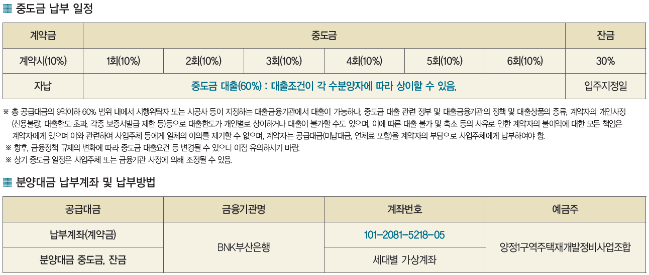 ※ 상기 중도금 일정은 사업주체 또는 금융기관 사정에 의해 조정될 수 있음.