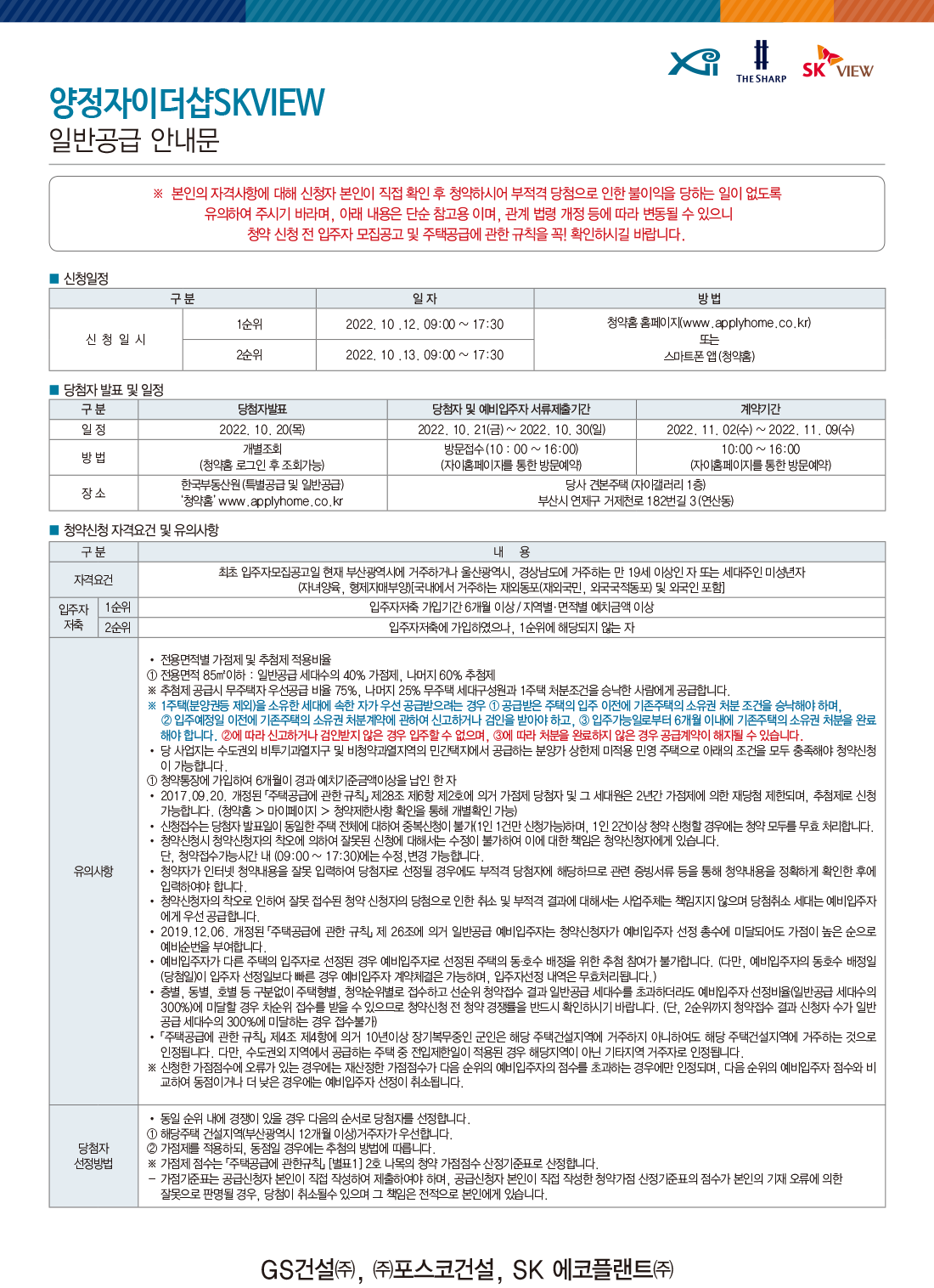 ■ 주택공급에 관한 규칙 제20조의 규정에 의거 부산광역시 부산진구 건축과 - 58193호(2022. 09. 26.)로 입주자 모집공고 승인