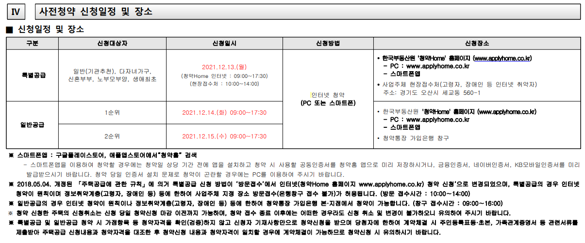 - 특별공급 청약: 12/13